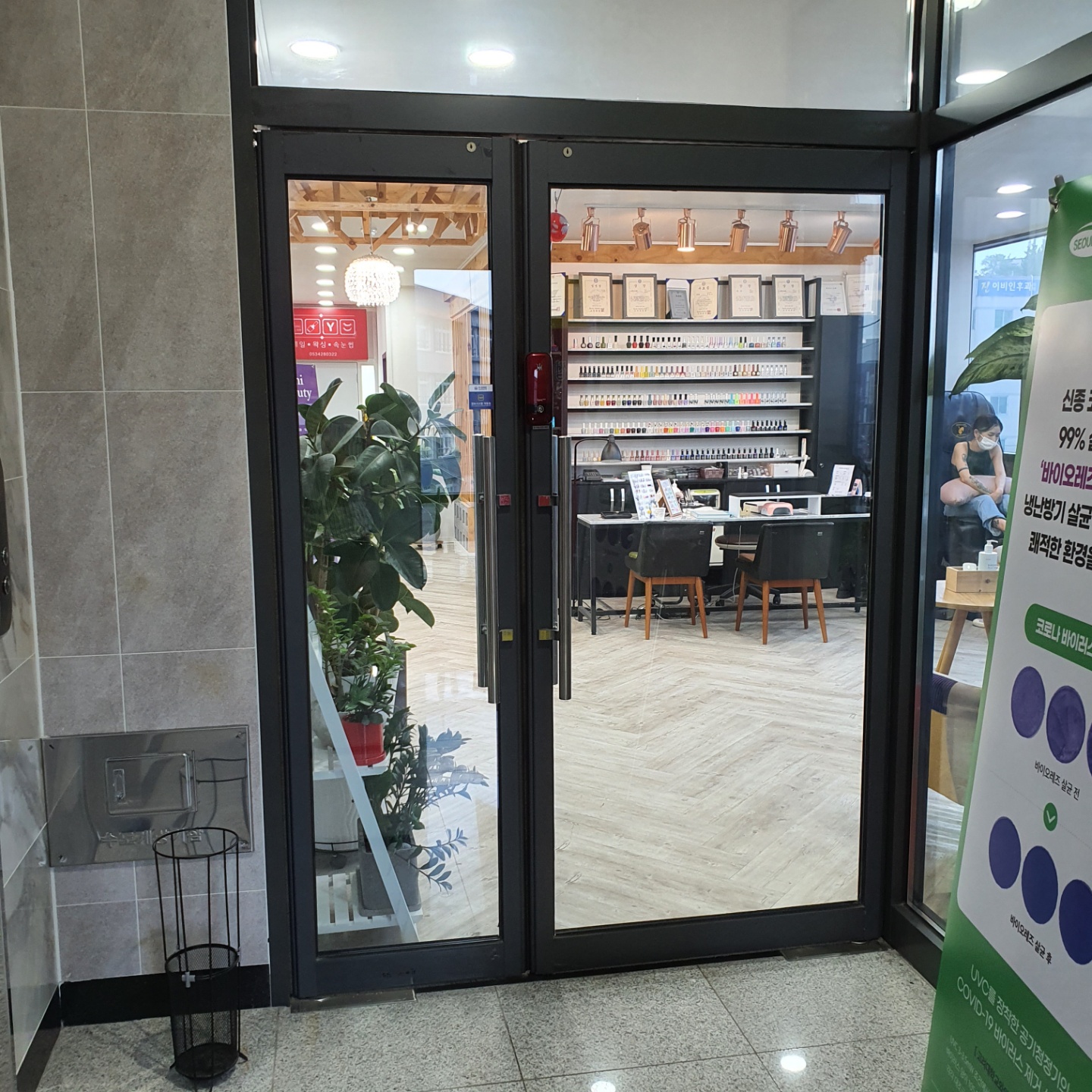 저기 보라색 문이 여기 뷰티샵의 밀실!?